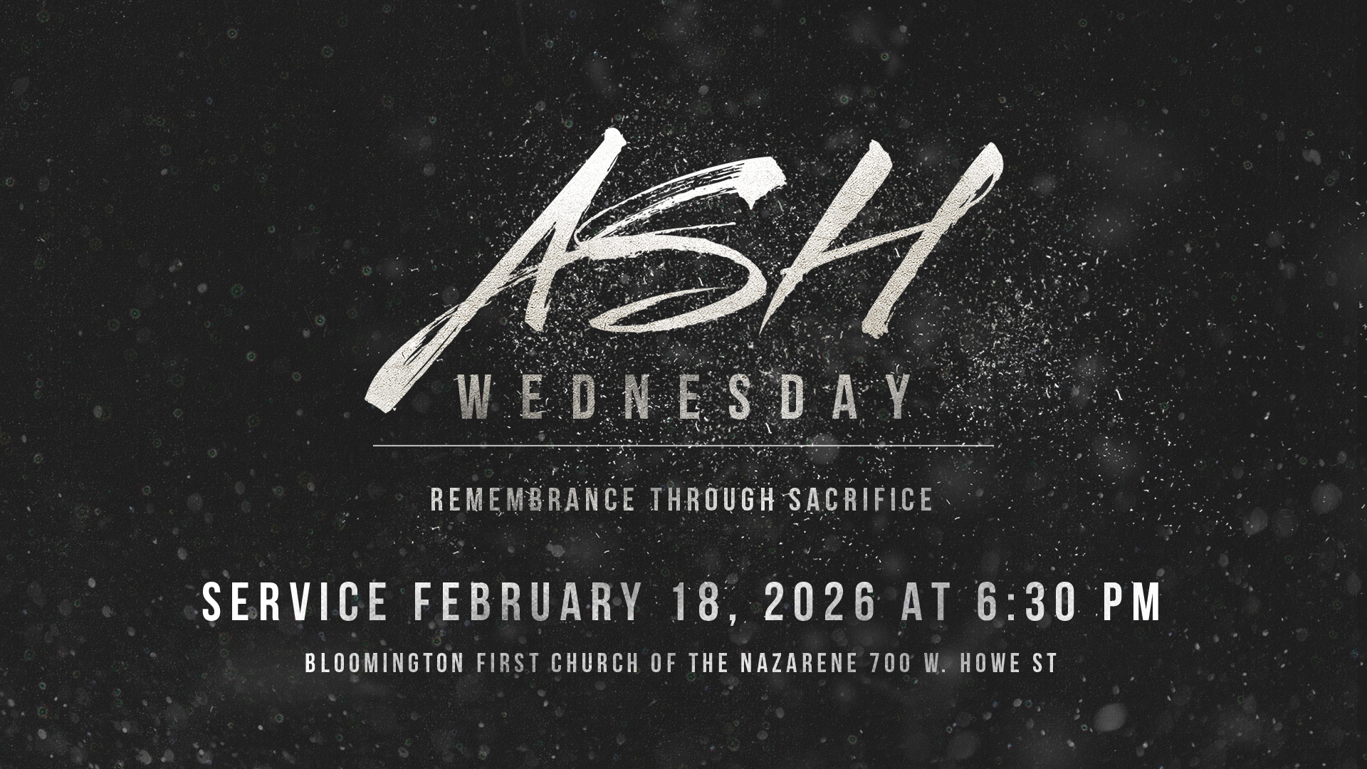 ASH WEDNESDAY SERVICE Join us for Ash Wednesday Service as we begin our Lenten journey. For information about other events at Bloomington First Church of the Nazarene click here.